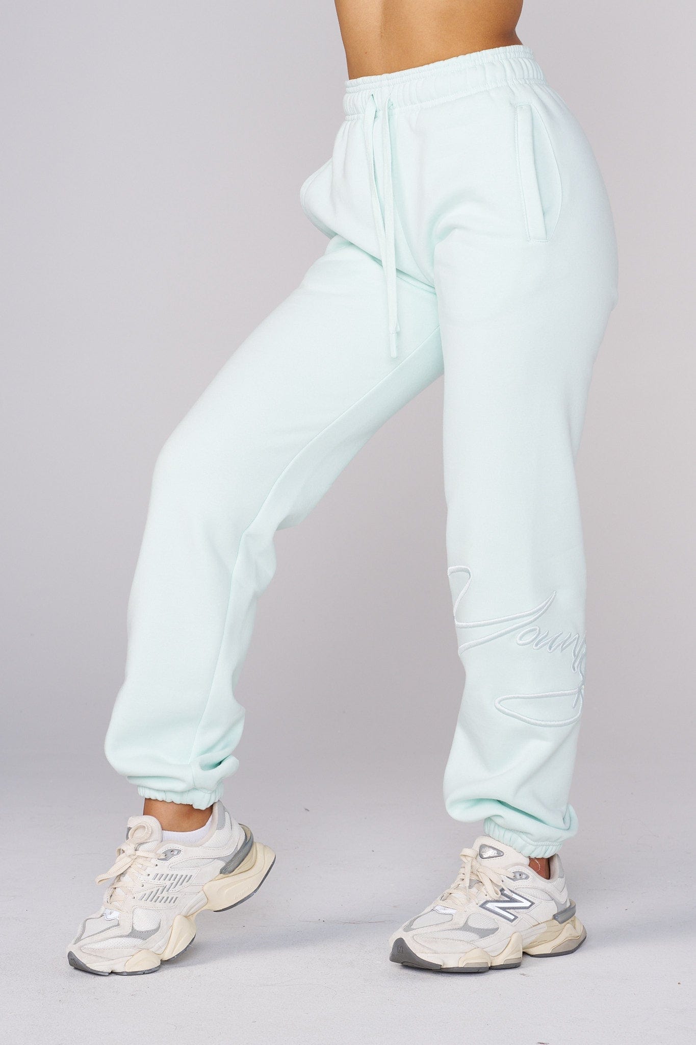 DESIGN: Introducing our Signature Joggers: crafted from cozy fleece with a raised embroidery design, available in vibrant spring colors for ultimate comfort and style.