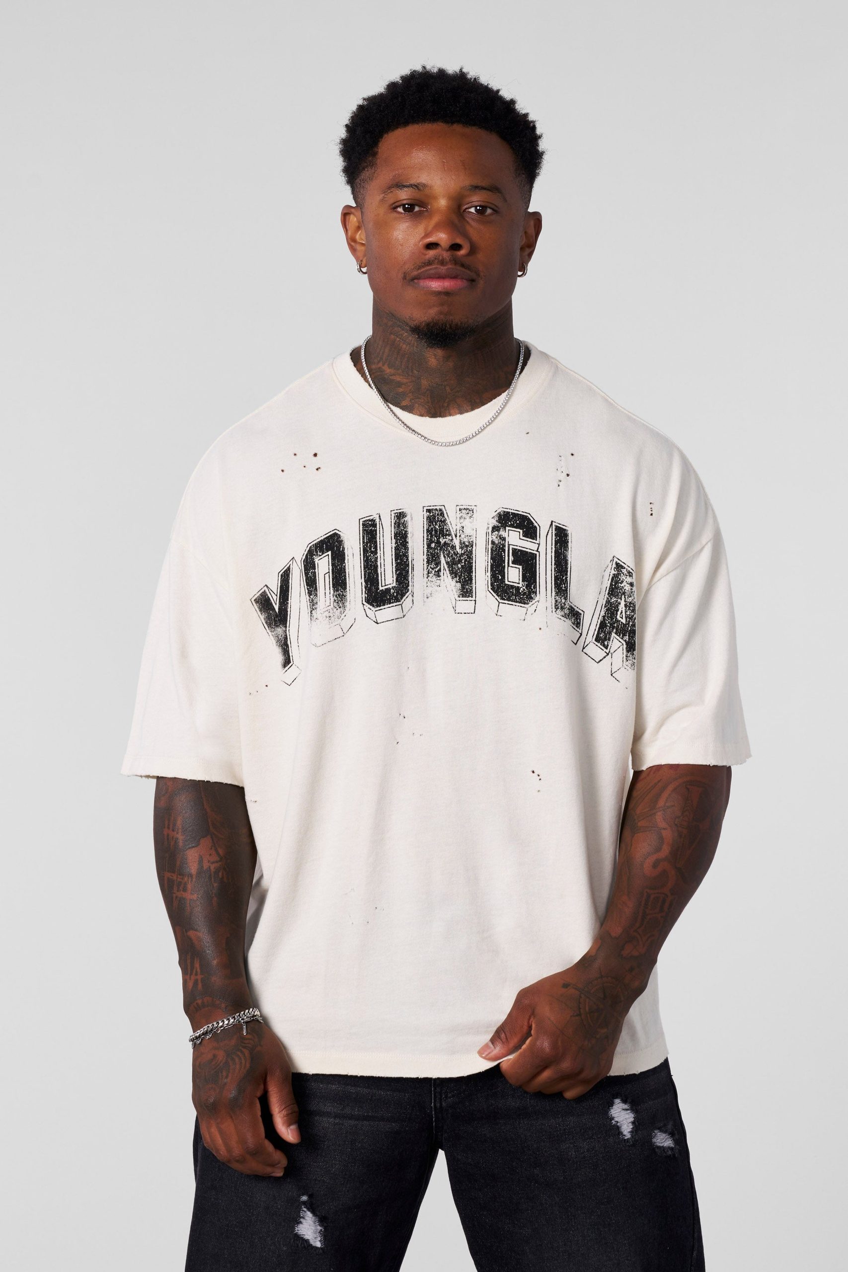 DESIGN: The Scuffed Cloud Tee is all about softness. Made from ultra-lightweight peachy cotton, it delivers a cloud-like feel you’ll want to live in. Featuring a vintage arched logo and carefully placed distressed cuts, this tee blends worn-in comfort with a raw street look. Effortlessly bold and endlessly soft.